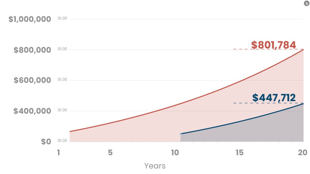 Compound interest may be one of the greatest secrets of smart investing. And time is the key to making the most of it. If you invested $250,000 in an account earning 6%, at the end of 20 years your account would be worth $801,784. However, if you waited 10 years, then started your investment program, you would end up with only $447,712.